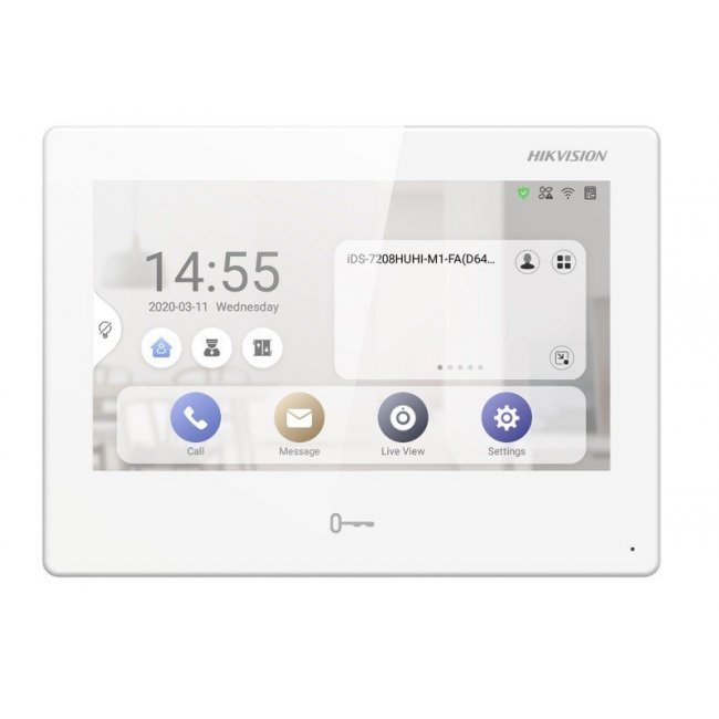 7 “IP відеодомофон. Сенсорний LCD екран з роздільною здатністю 1024×600. Тривога: 8вх / 2вих; Мережа: RJ 45 (100М), Wi-Fi 802.11b / g / n; Вбудована пам’ять 4 Гб, ОЗУ 1 ГБ; Новий GUI інтерфейс; Підтримка захоплення фото під час відеозв’язку. Віддалене відкриття дверей; Живлення DC 12В / PoE (802.3af). 187х137х26 мм
